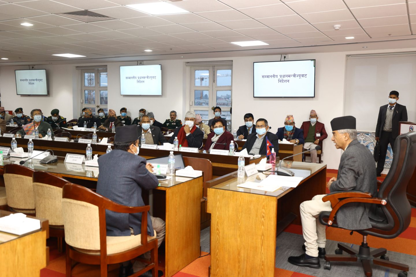 बैठकमा स्वास्थ्य मन्त्रालयका सचिव डा. रोशन पोखरेलले नेपालमा पछिल्लो समय कोरोना भाइरस संक्रमणको अवस्था र मन्त्रालयले गरिरहेको कामका बारेमा ब्रिफिङ गरेका थिए। नेपाली सेनाले पनि पछिल्लो अवस्थाका बारेमा बैठकमा जानकारी गराएको थियो।