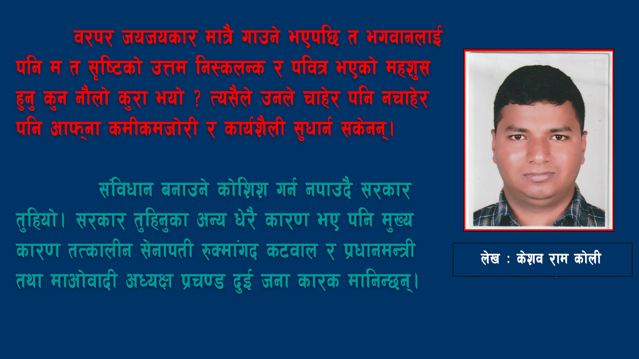 केशव कोली नेपालमा १० वर्षे शसस्त्र जनयुद्धको अगुवाइ गरि देशमा आमूल परिवर्तन ल्याउछौ भनी गरिब नेपाली जनतालाई ठुल- ठुला सपना…