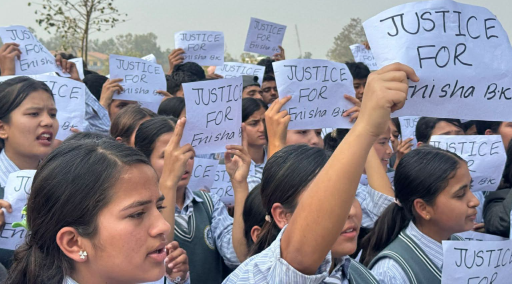 २९ फागुन, सुर्खेत । १६ वर्षीया किशोरी इनिसा विकलाई न्याय दिनु पर्ने माग राख्दै विद्यार्थीहरूले आज प्रदर्शन गरेका छन् ।